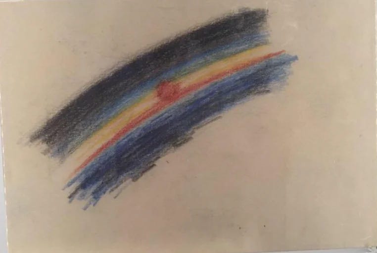 Then, something amazing happened. Leonov, drenched in sweat, summoned just enough energy to wedge himself back into the space capsule. As the life in his lungs threatened to dwindle, he replenished his creative vitality. He picked up colored pencils, and made space art.